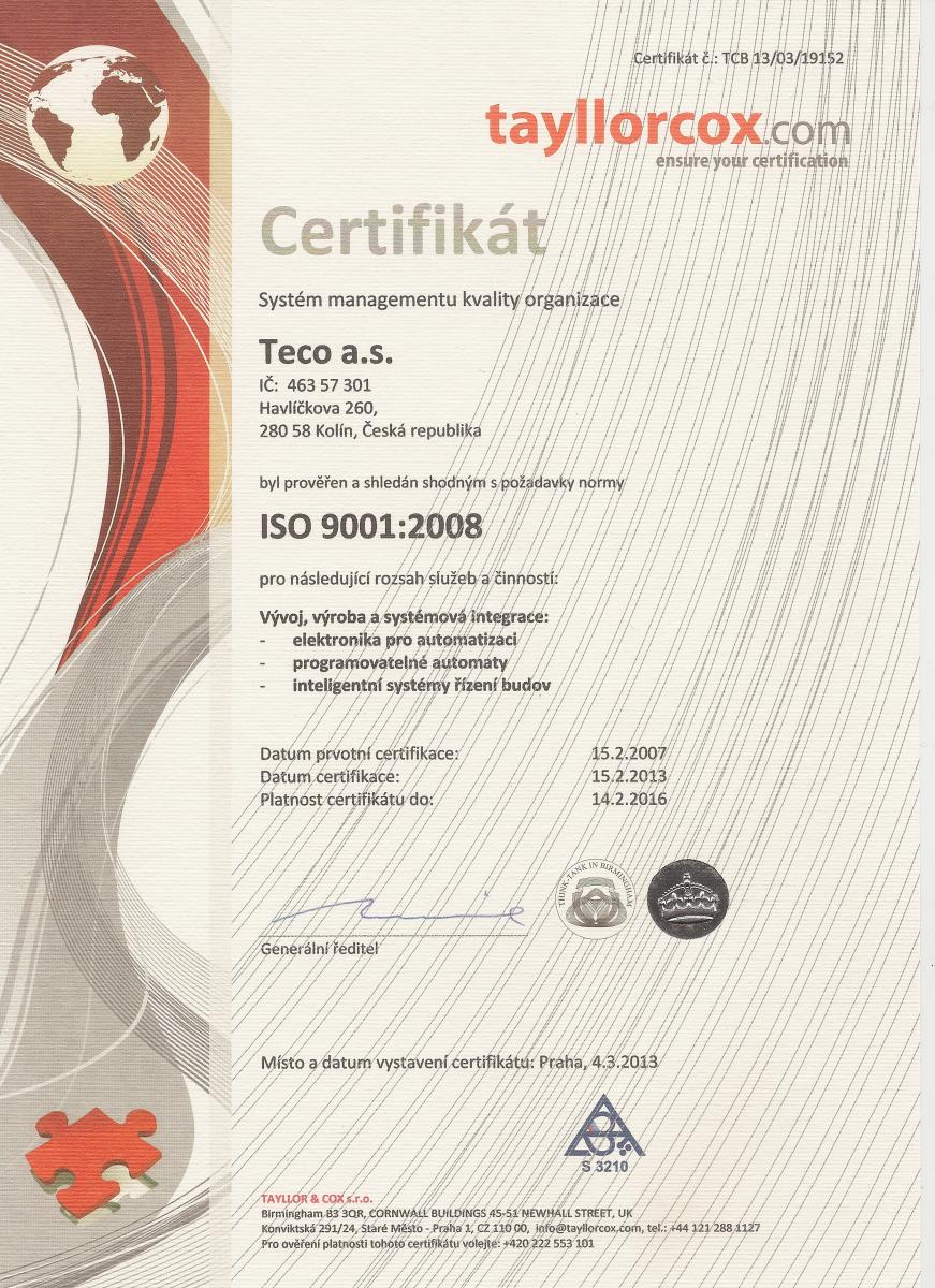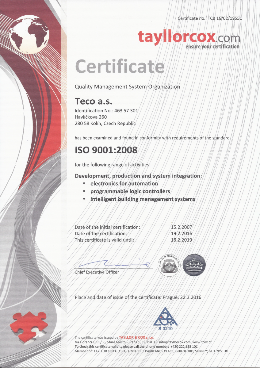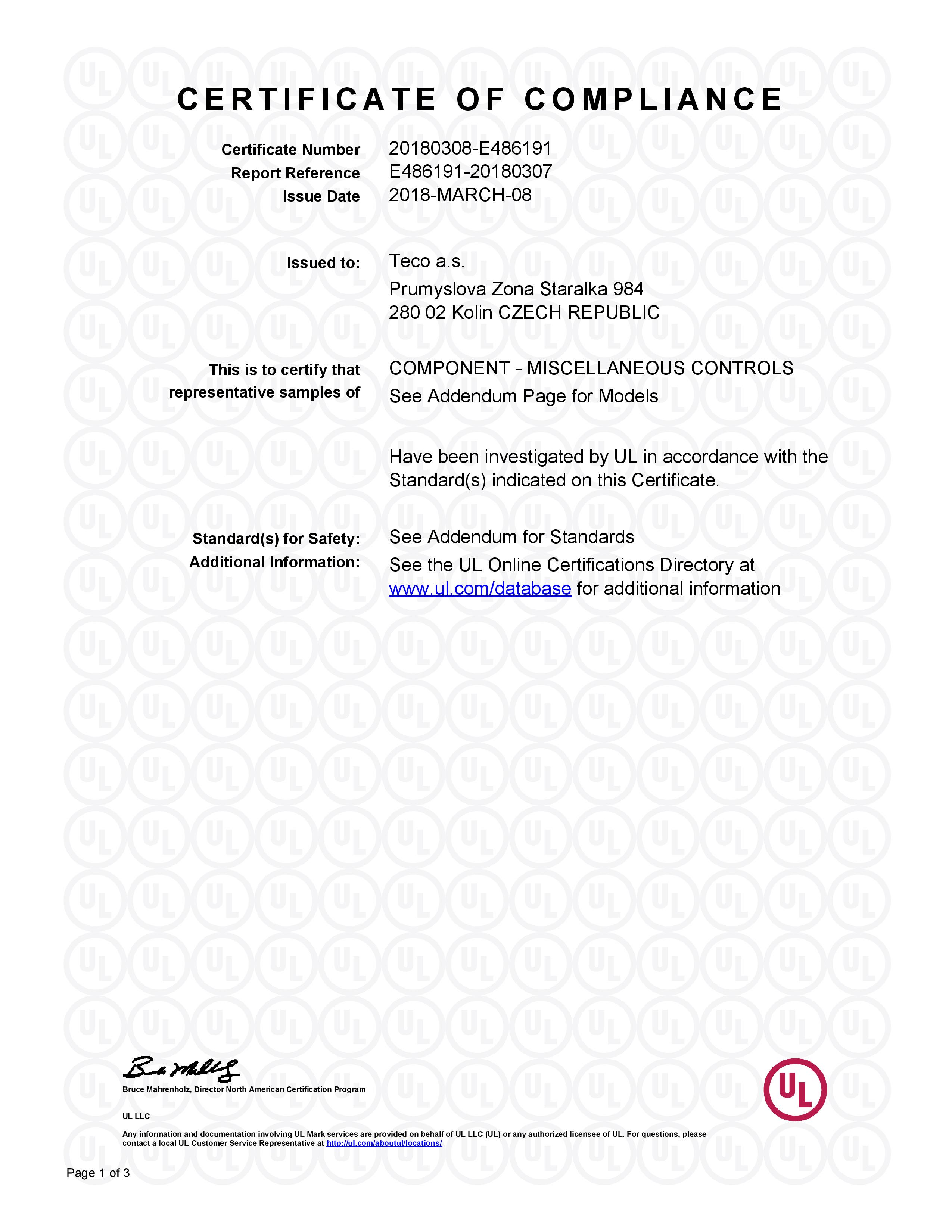 Certifikace Certifikace ISO Certifikace UL V současné době jsou certifikovány UL tyto produkty: CP-2007