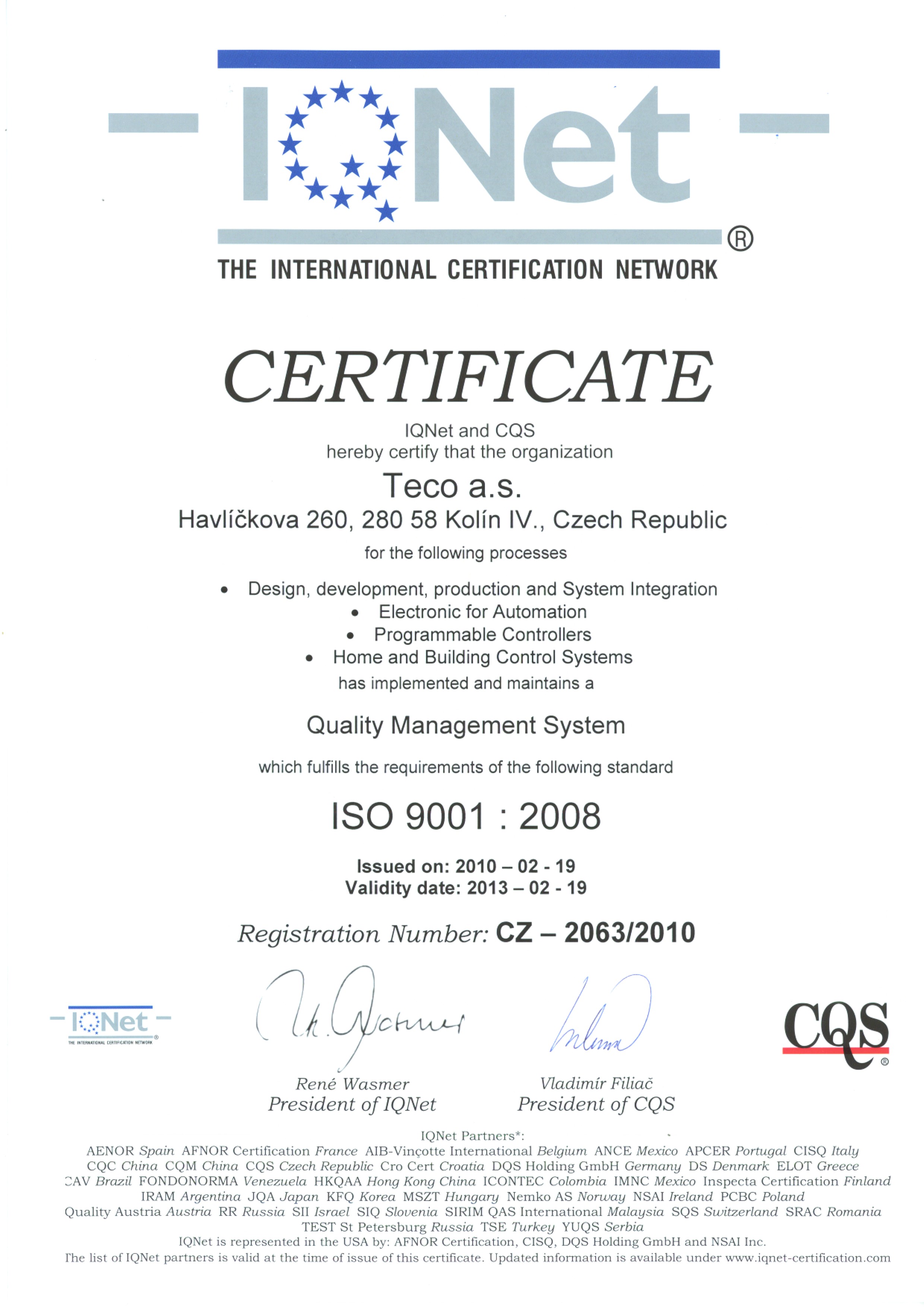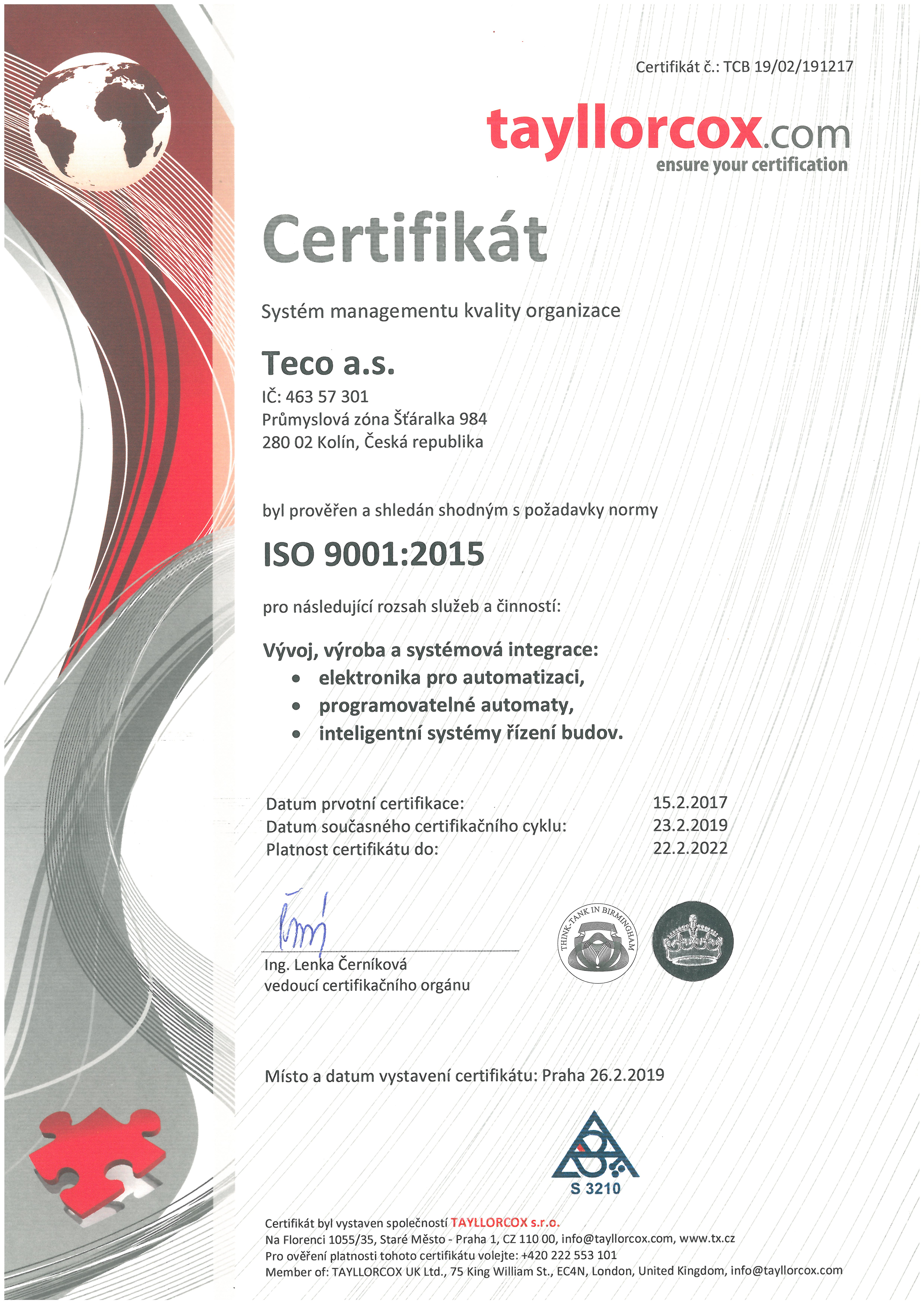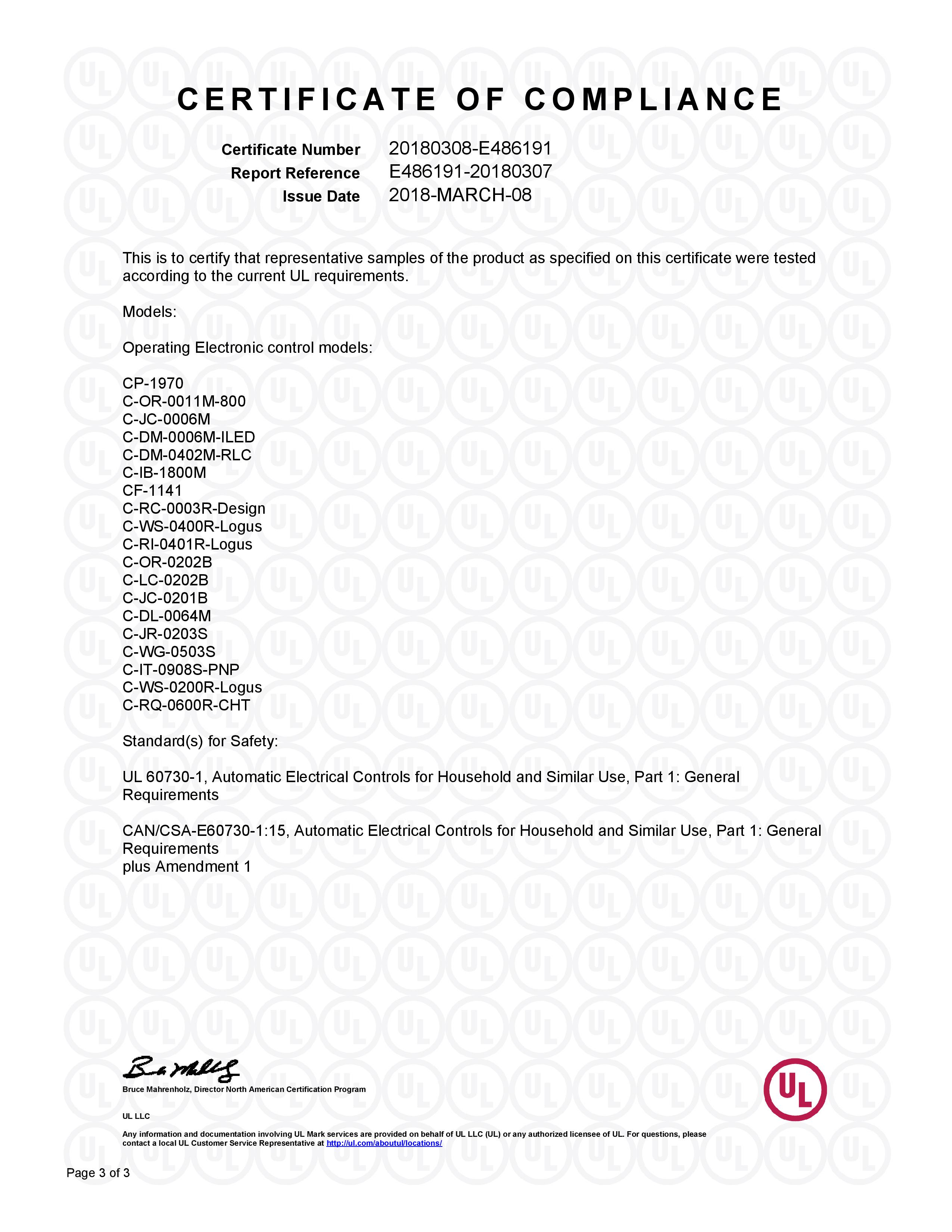 Certifikace Certifikace ISO Certifikace UL V současné době jsou certifikovány UL tyto produkty: CP-2007
