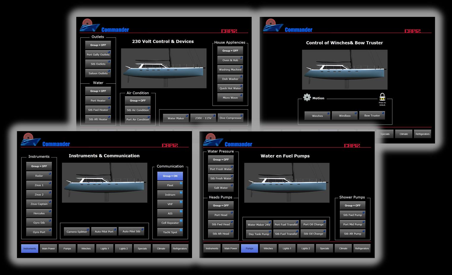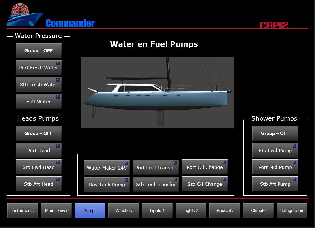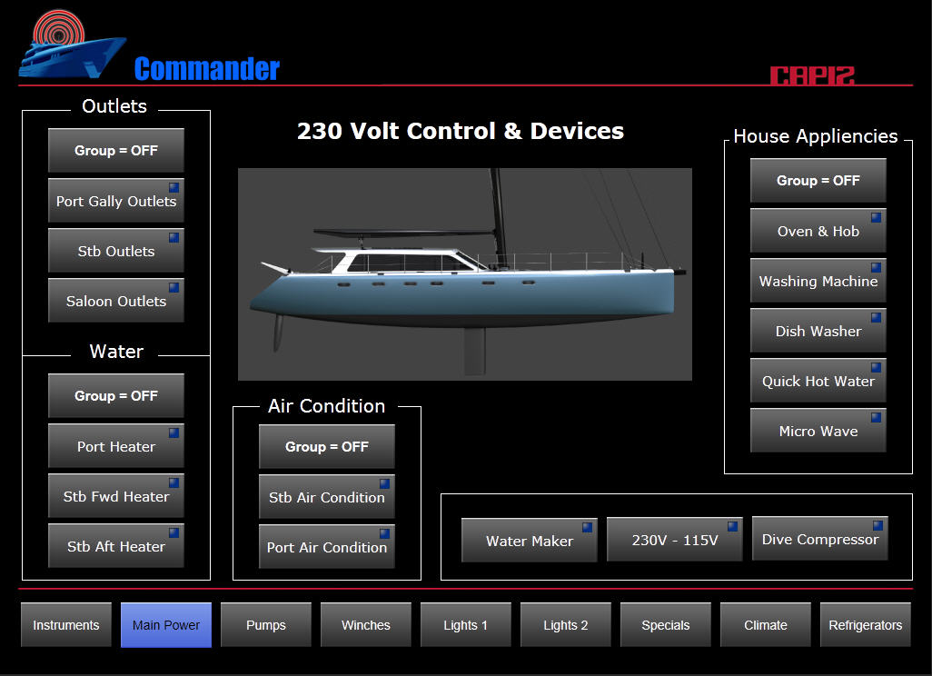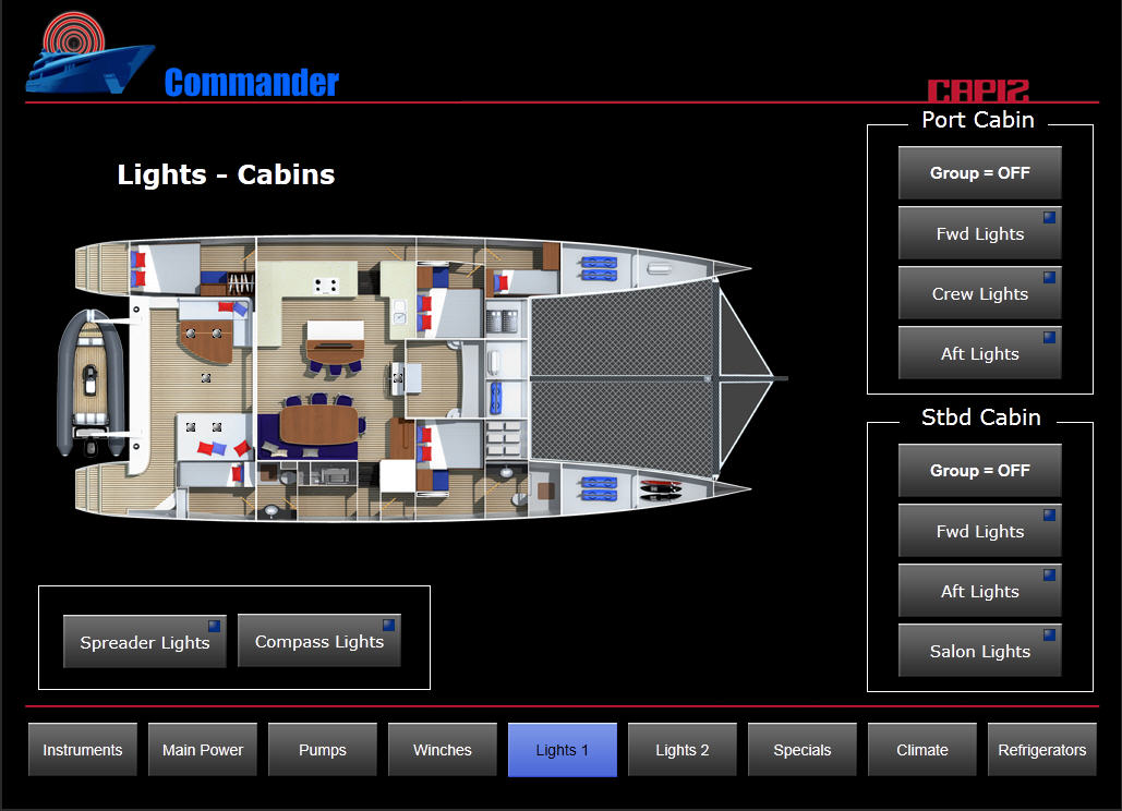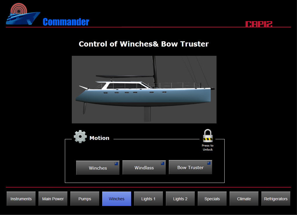 66 stop dlouhý katamaran řídy Gunboat nazvaný SLIM je určený pro závody kolem světa a postavili jej na objednávku v Jižní Africe. Závodní katamaran je odlehčen na zlomek hmotnosti jakékoliv srovnatelné cestovní lodí obdobného rozměru při zachování všech přísných bezpečnostních standardů. V kooperaci s firmou Capi2 Nederland BV, která vybavila katamaran kompletně elektro zařízením, LED osvětlením a čerpadly, firma B&R Design BV navrhla kompletní ovládání jachty přes fixní 10“ dotykový panel a zároveň přes iPad odkudkoliv z lodi.