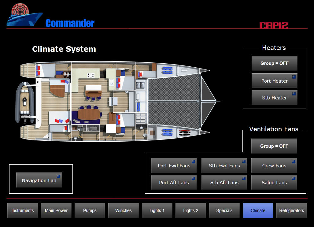 Systém Tecomat Foxtrot na palubě byl kompletně naprogramován v Holandsku. V Jižní Africe jej stavitelé lodi samostatně namontovali do katamaranu. Poté firma B&R Design na dálku přes internet aplikační program doladila. Katamaran vyplul pod vlajkou Marschallových ostrovů z „rodného“ Kapského Města na svou první šestiměsíční plavbu přes Atlantik do Karibiku a dál do Severní Ameriky v listopadu 2013. Ještě během první plavby byly na vzdálenost 5000 mílí v rámci opravdu vzdálené podpory koncového zákazníka, party pěti sportovních mořeplavců a jedné mořeplavkyně, upraveny poslední detaily.