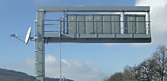 Proměnná značka a textová tabule umístěné na portálu nad vozovkou informují řidiče 3 řádkovým textem o aktuální situaci na trase před nimi. Informace jsou kordinovány z Národního dopravního informačního centra (NDIC).