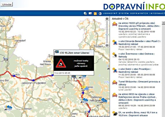 Informace o aktuálním stavu najdete na www.dopravniinfo.cz.