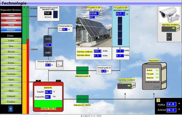Řízení solárního repeateru sítě GSM-R napájeného z fotovoltaických panelů