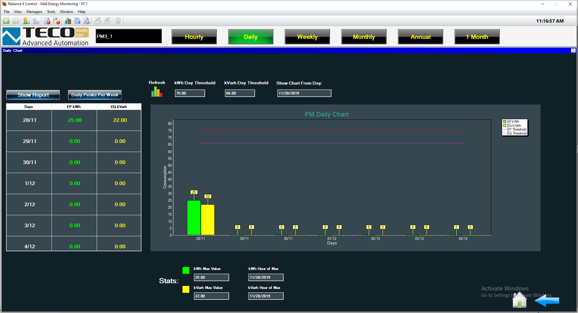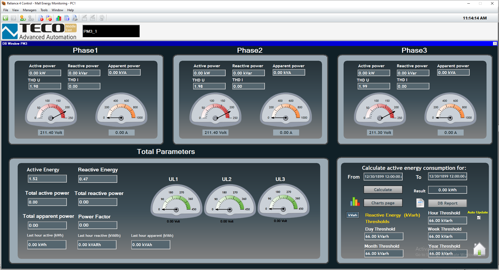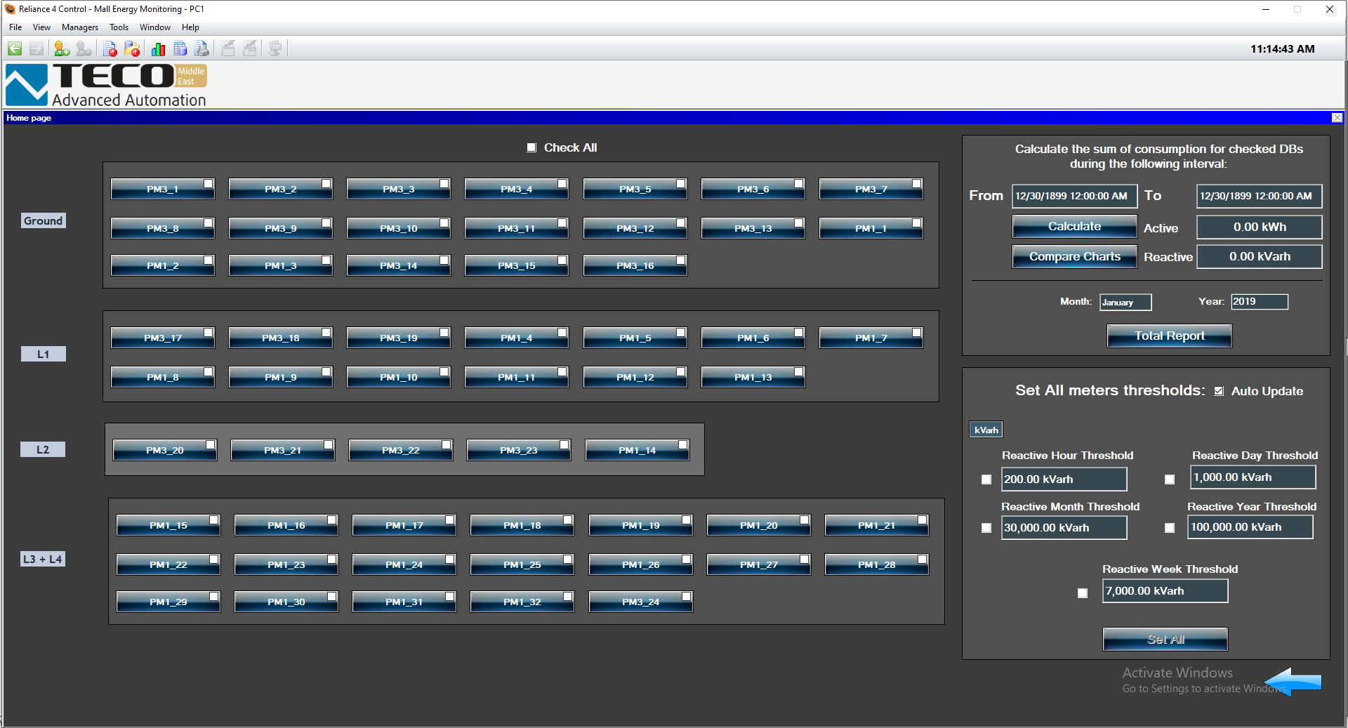 Monitoring je prováděn s pomocí systému SCADA Reliance, který umožňuje zobrazení všech elektroměrů na jedné obrazovce.