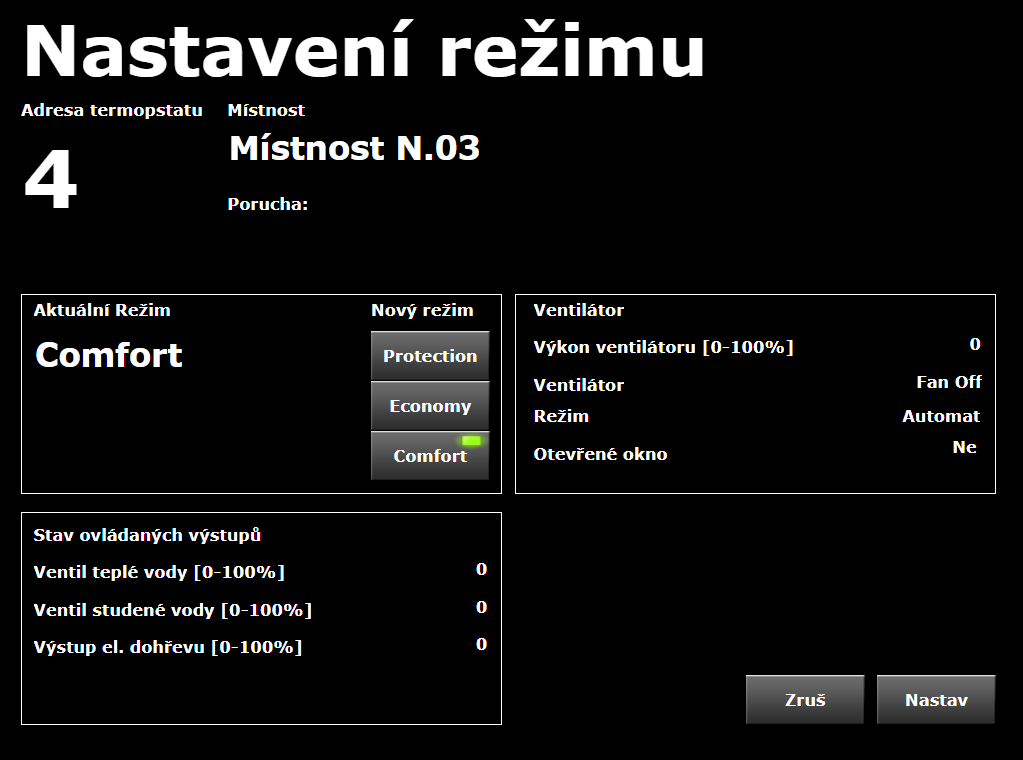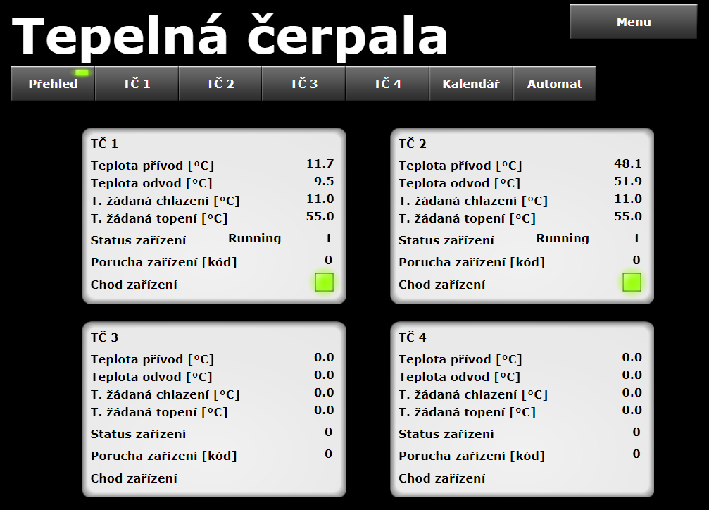 Řídicí systém Tecomat Foxtrot zde řídí a integruje následující technologie: