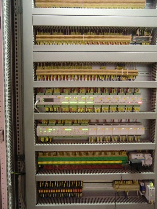 Řídicí systém Tecomat Foxtrot je umístěn v 11 rozvaděčích, rozmístěných v technickém mezipatře objektu. Celkově je zde 11 centrálních modulů Tecomat Foxtrot CP-1016 a periferní moduly na sběrnici TCL2 a CIB.