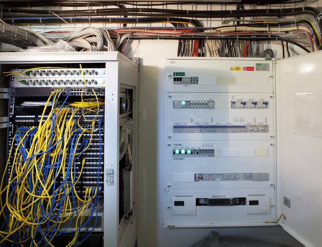 Dále systém Tecomat Foxtrot řídí kompletní vzduchotechniku včetně rekuperace vzduchu a tepelných čerpadel pro ohřev vzduchu. Systém Foxtrot je také propojen se systémem EZS Honeywell a EPS, včetně požárních čidel. K řídicímu systému Foxtrot je připojen i přístupový systém do vyhrazené části školicího střediska, které je určeno pro ubytování účastníků školení. Ovládání systému je umožněno pomocí dvou nástěnných displejů ID-18 a pokojových modulů RCM2-1.