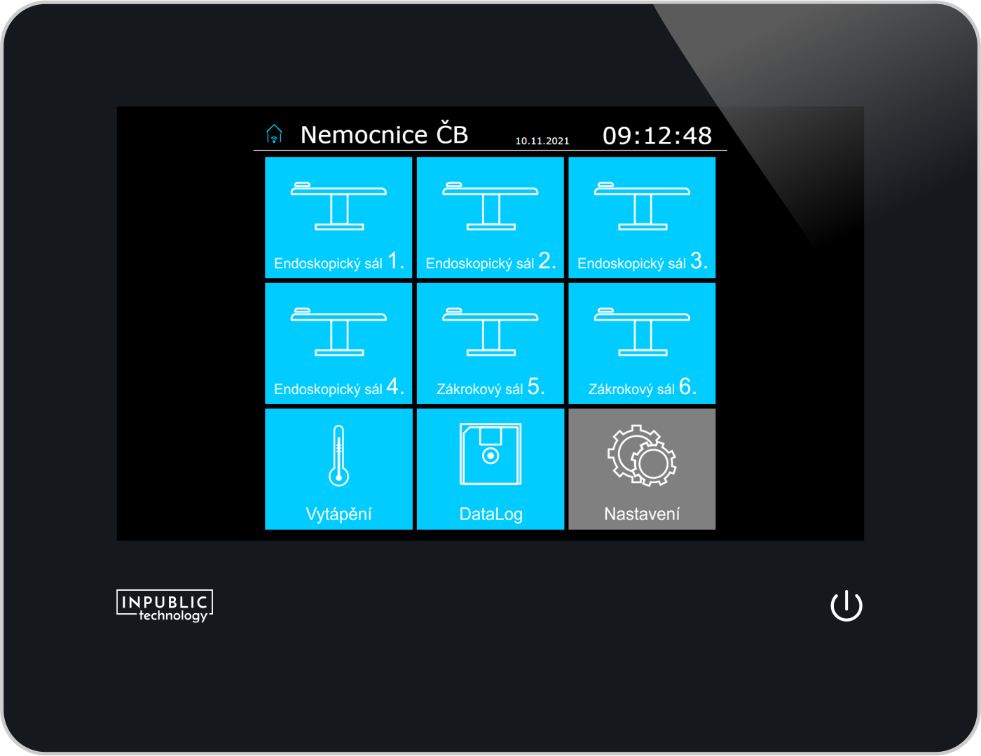 Cílem bylo tedy moderně vyřešit ovládání, monitorování a signalizování 6-ti zákrokových sálů v nově postaveném pavilonu v areálu Nemocnice České Budějovice. Pro realizaci jsme zvolili centrální řídící jednotku CP-2007 z nové řady Foxtrot 2. Tato jednotka se stará nejen prostřednictvím vlastních integrovaných vstupů a výstupu, ale i externích CIB jednotek o vlastní monitoring stavů, řízení osvětlení, vytápění, optickou a akustickou alarmovou signalizaci.