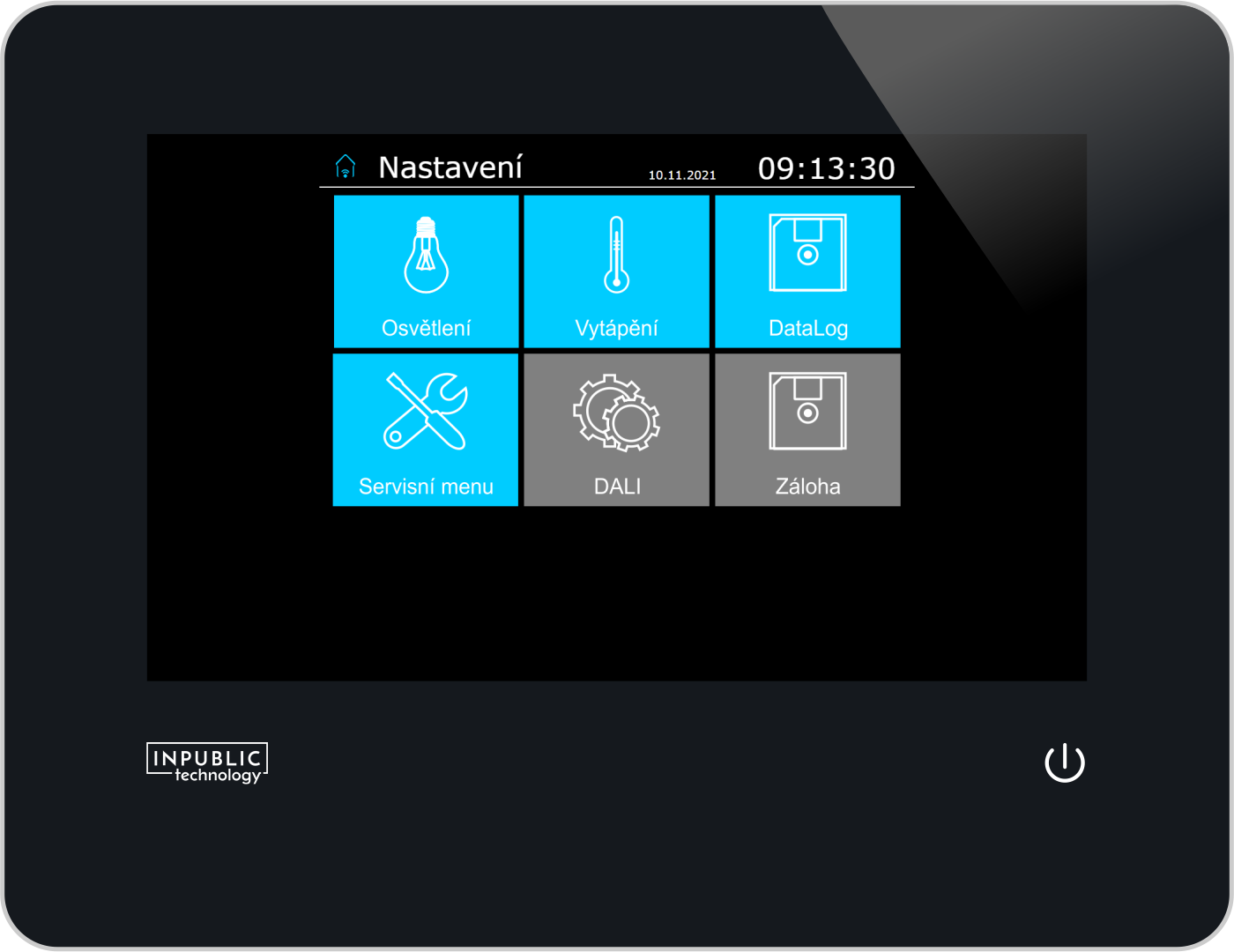 Centrální monitoring a ostatní funkce se nastavují ze servisního panelu údržby. Vizualizace běží na integrovaném webserveru v řídící jednotce a byla vytvořena nástrojem WebMaker v programovacím nástroji Mosaic.