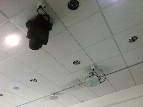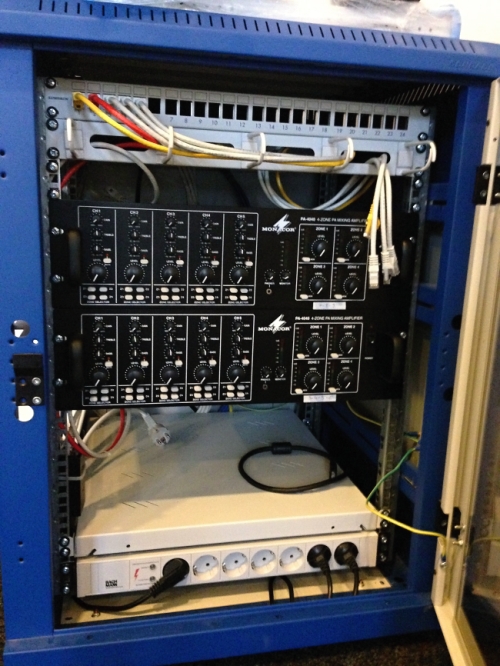Výše zmíněné technologie jsou integrovány do našeho řídicího systému Tecomat Foxtrot. Hlasové servery jsou připojeny do Foxtrotu přes sériový port RS232; světelné reflektroy a TV jsou integrovány přes IR signál a světla přes sběrnici DMX a DALI.