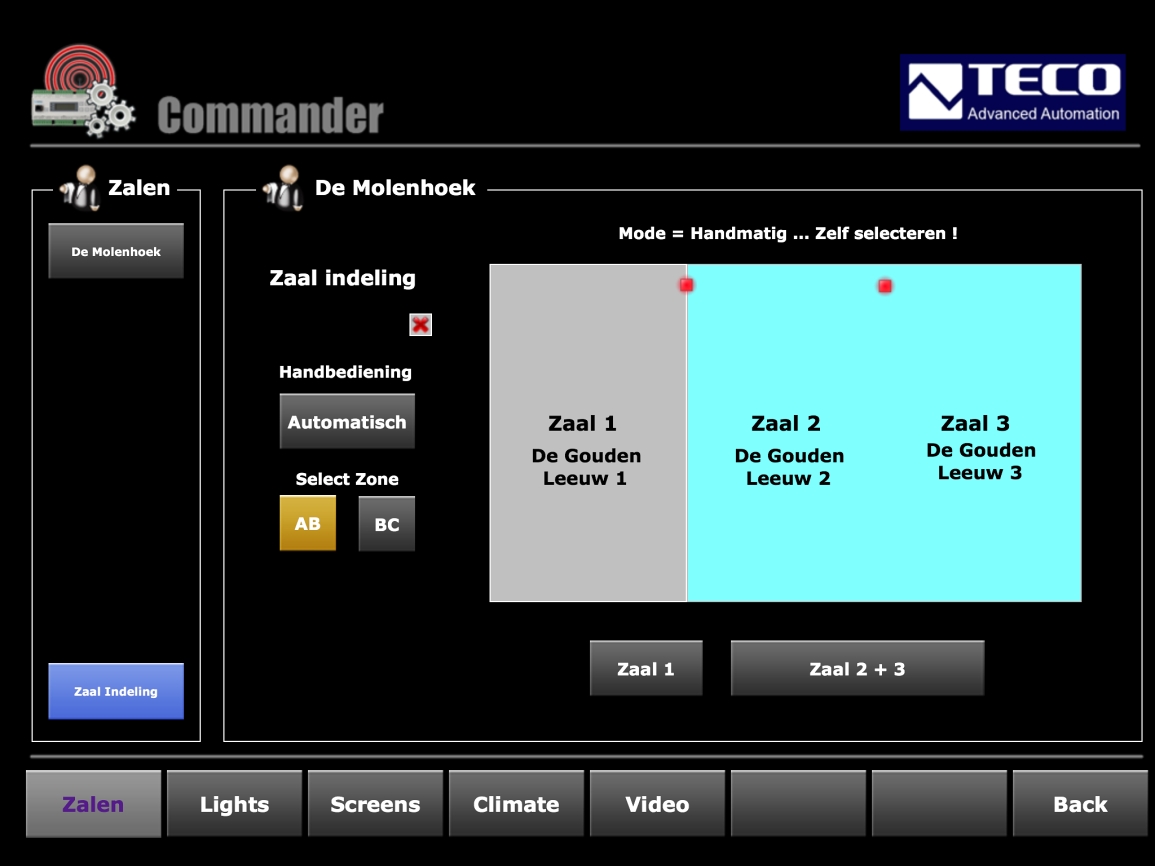 Dva velké kongresové sály lze pohyblivými stěnami rozdělit každý na tři sály menší nebo jeden větší a jeden menší ve dvou možných kombinacích. Konkrétní konfiguraci lze zadat ručně. Díky senzorům v pohyblivých stěnách ale systém konkrétní konfiguraci rozezná sám a podle toho už sám synchronizuje ovládání stínění, osvětlení, pláten, projektorů a distribuci AV signálu, tak, aby na dvou nebo na třech plátnech běžel shodný program.
