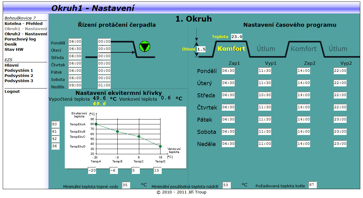 - časové programy vytápění pro každý okruh