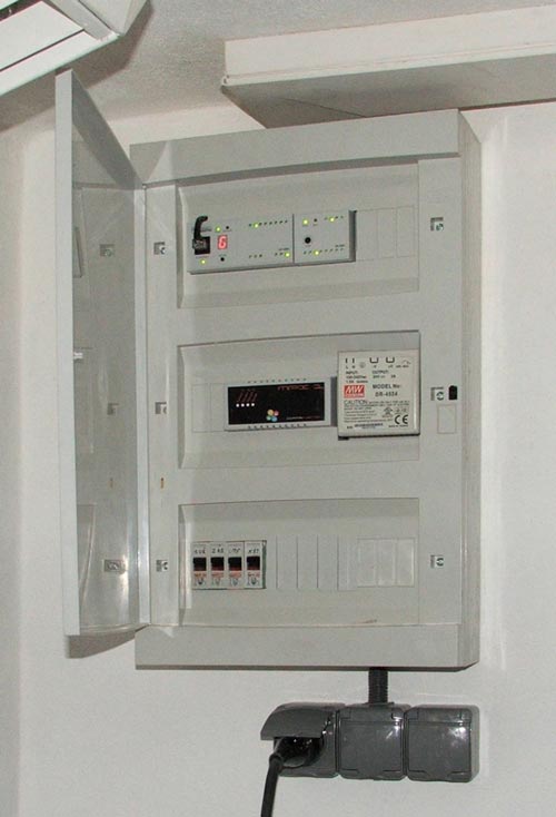Zařízení je napájeno z UPS o výkonu 3,3 kVA. Systém je připojen do místní LAN pomocí převodníků ETHERNET/OPTO a celá vizualizace je poté přeložena do internetu, aby bylo možné systém dálkově spravovat a monitorovat.