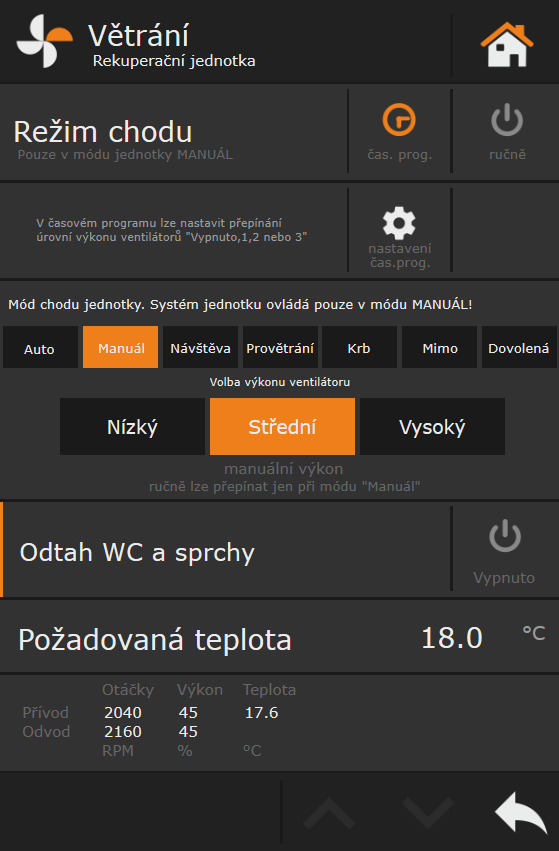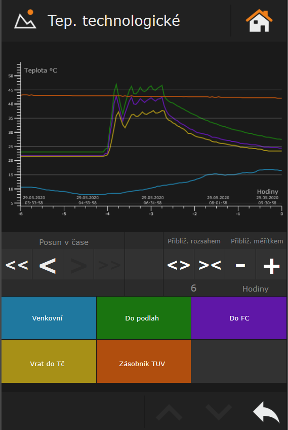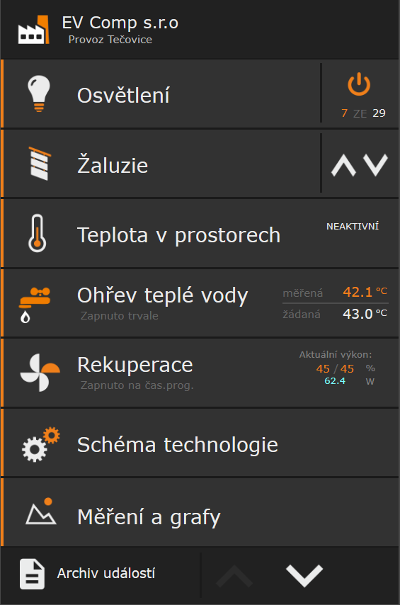 Vizualizace ovládání je ve Webmakeru. K dispozici je samozřejmě vzdálený přístup na ovládání prostřednictvím chytrého telefonu/tabletu/PC.