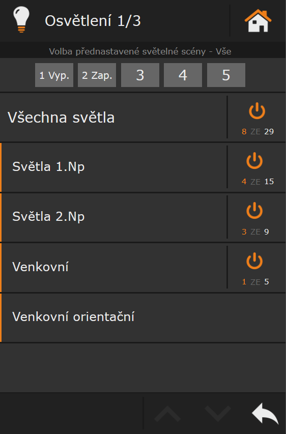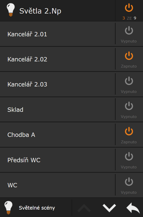 - osvětlení – spínání, scény