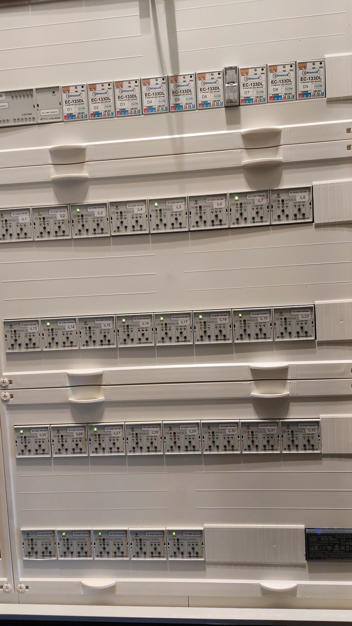 Jednotky typu CP-1001 a CP-1000 mezi sebou aktivně komunikují přes lokální síť LAN. Většinová část světelných zdrojů je řízena po sběrnici DALI, 90 % svítidel jsou stmívatelná. Integrace se serverem BMS vizualizací po sběrnici ModBus TCP/IP.
