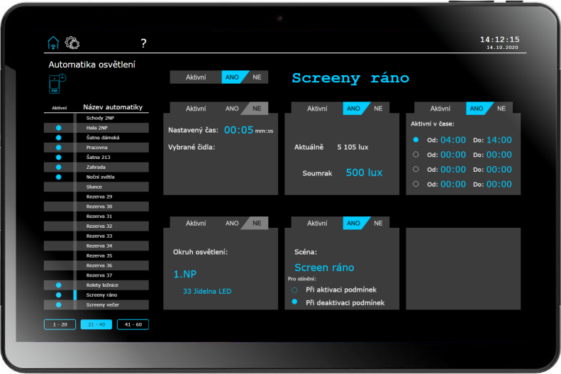 - cca 200 světelných stmívaných a spínaných okruhů