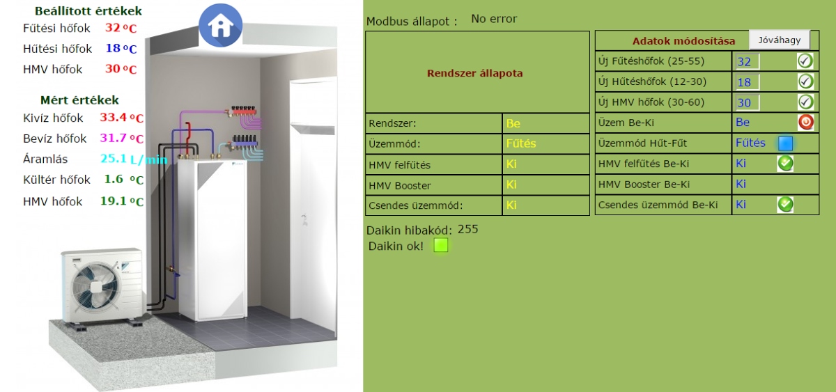 - všechny A/C jednotky (Daikin tepelné čerpadlo / RS-485 Modbus komunikace),