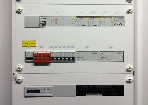 Pro řízení a integraci dílčích systémů a technologií byl zvolen náš systém Tecomat Foxtrot s centrální jendotkou CP-1000 a periferními moduly řady CFox na CIB sběrnici. Jako interiérové ovládací prvky byly zvoleny vypínače v designu Gira System55.