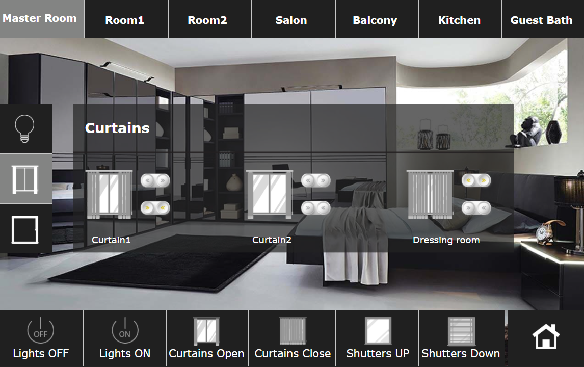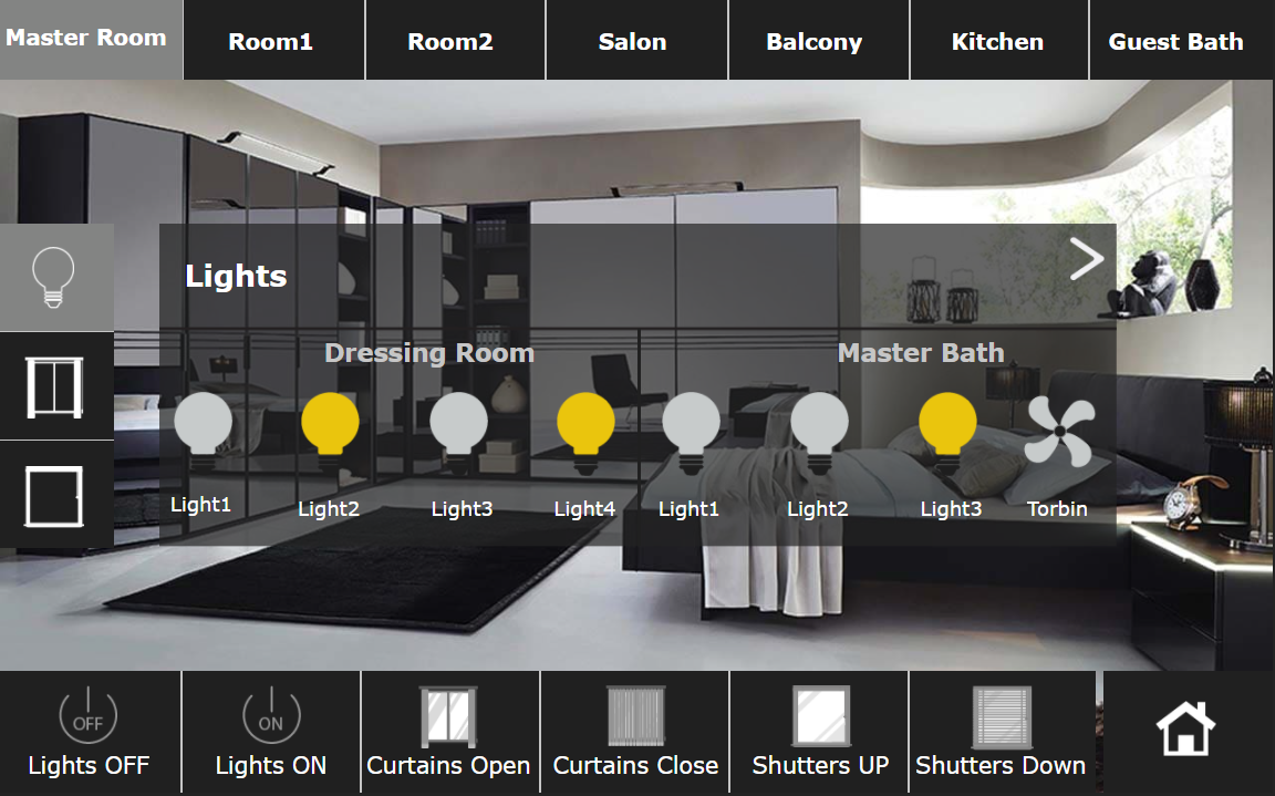 Za tímto účelem zde syrská společnost ISTC implementovala řídicí systém Tecomat Foxtrot, který spolu s elegantními nástěnnými dotykovými ovladači požadavky majitele beze zbytku naplnil.Obyvatelé apartmánu tak mohou díky našemu systému pohodlně ovládat světla, žaluzie a závěsy v celém apartmánu pouhým kliknutím na ikonu v jejich chytrém telefonu nebo na tabletu. A to ať už se nachází uvnitř apartmánu nebo kdekoli mimo něj. Využít mohou ale samozřejmě také elegantní nástěnné dotykové ovladače, které se nacházejí v každé místnosti. Design každého z nich byl přizpůsoben požadavkům majitele.