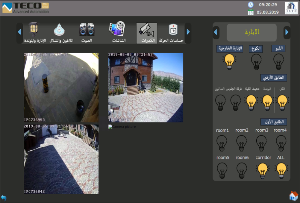 Zabezpečovací systém lze ovládat kdykoli a odkudkoli s pomocí mobilního telefonu či tabletu. Ve vile se nachází tři kamery, díky kterým může majitel sledovat dění ve vile kdykoli a kdekoli.