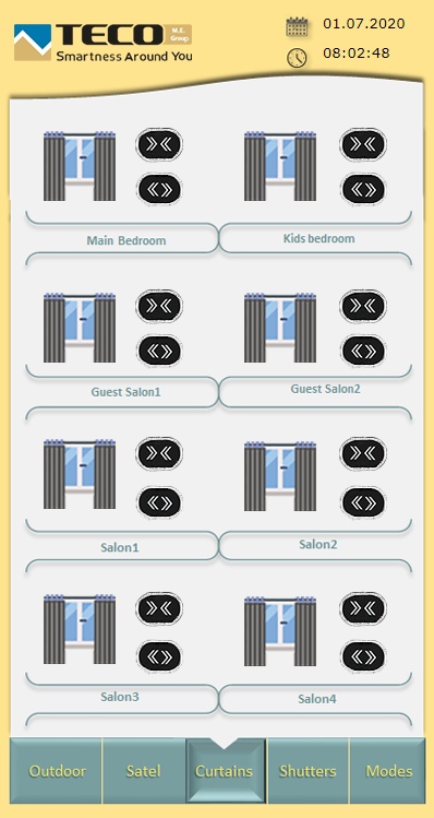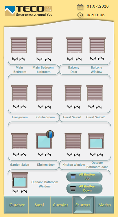 Díky přehlednému a snadnému ovládání s využitím mobilního telefonu či tabletu může majitel vily pohodlně kontrolovat a upravovat stav všech žaluzií ve vile. Závěsy může ovládat jak jednotlivě s pomocí dálkového ovladače, tak jednotlivě či najednou ze svých mobilních zařízení.