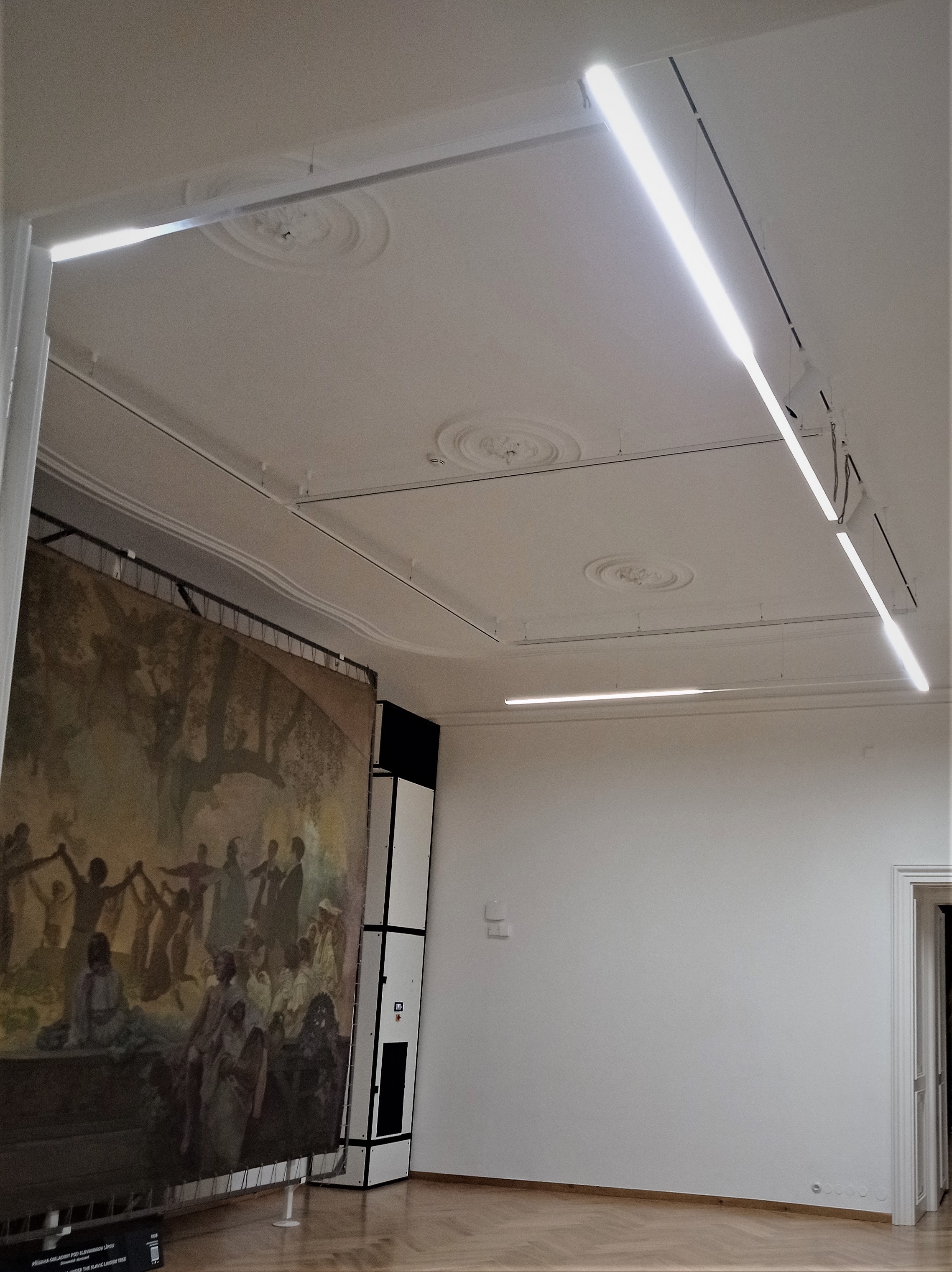 V celé galerii jsou instalovány moduly pro připojení a řízení až 512 svítidel. Na osvětlení obrazů je nyní použito celkem 150 směrových svítidel, která jsou individuálně řízena systémem Foxtrot prostřednictvím sběrnic DALI.