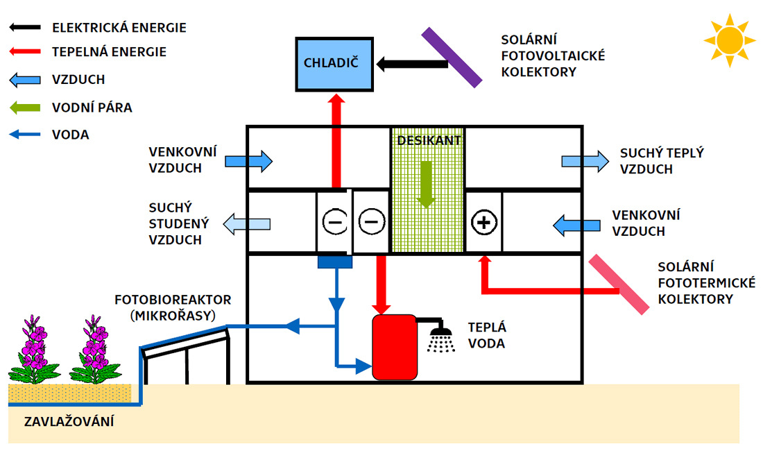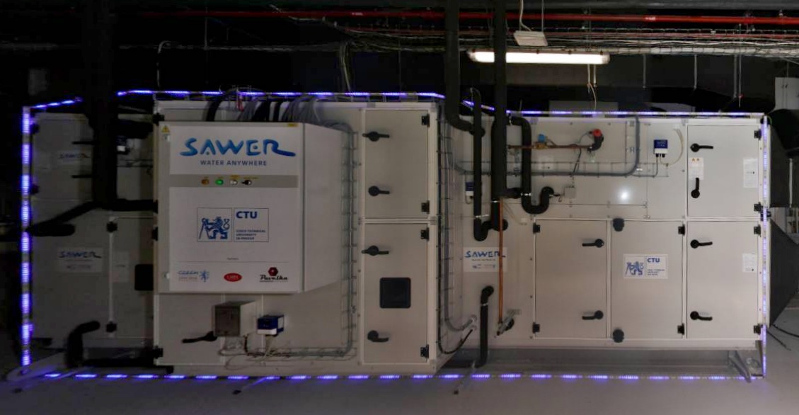 Doc. Tomáš Matuška vysvětluje, co znamená zkratka S.A.W.E.R.: „Je to zkratka slov Solar-Air-Water-Earth-Resource. Tedy vlastně všech komponent, se kterými systém pracuje. Kromě samotné vzduchotecnické jednotky je součástí systému i úpravna vody společnosti Euroclean, která ji desinfikuje a následně mineralizuje."