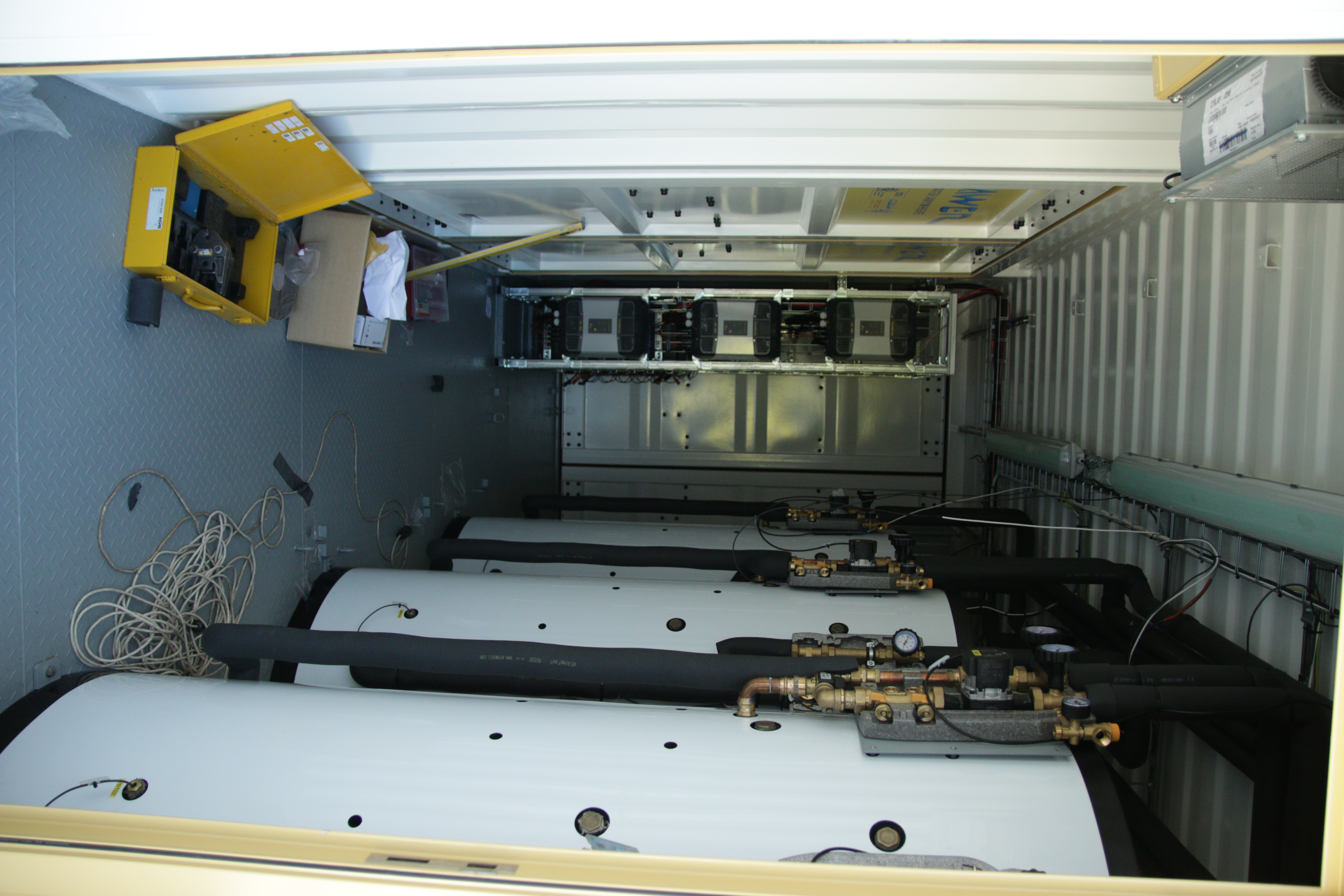 Ing. Pavel Pelan, který Foxtrot programoval, k energetické části řekl: „Kromě kombinovaných jsou použity i standardní fotovoltaické panely. Třífázovou instalaci napájejí hybridní střídače Studer spolupracující s bateriovým uložištěm BMZ a dále tepelné čerpadlo. Tedy součásti, které máme ověřeny u nás v Buštěhradu a používají se i v jiných budovách i v rodinných domech. Foxtrot se všemi těmito částmi komunikuje, průběžně měří parametry ve všech částech procesu a poveluje základní vzduchotechnickou jednotku tak, aby byl její chod energeticky optimalizován a výstup, tedy voda, maximalizován."