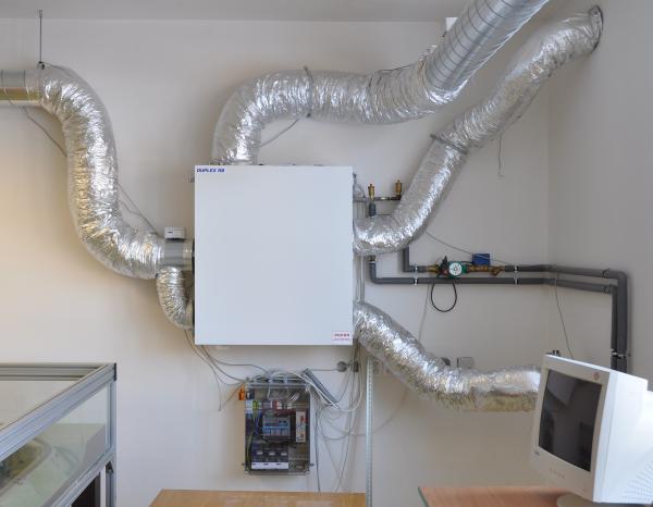 - Jednotku Atrea RB s 2 frekvenčními měniči, 3 servopohony, oběhovým čerpadlem, snímači teploty a snímačem koncentrace CO2 čídí PLC Foxtot CP-1018.