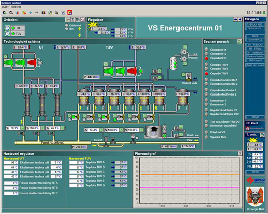 - monitorování a řízení 32 parních výměníkových stanic různých výkonů