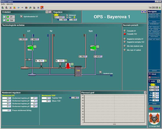 - monitorování a řízení 90ti objektových předávacích stanic (OPS) pro výrobu teplé užitkové vody a ohřev UT