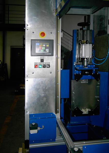 Automatická dvoukotoučová pila na ořezávání vtoku, výfuku a technologických nálitků na hliníkových odlitcích kuchyňských nádob. Stroj pracuje s SK pilami a odřezává vtoky až do průměru 50 mm. Je opatřen mikrochlazením.