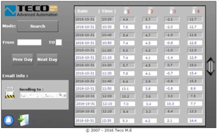 Teplota uvnitř chladících spotřebičů je měřena každých 10 minut a naměřené hodnoty jsou uchovávány v systému a také zasílány stanovené osobě na email. Naměřené hodnoty jsou uchovávány v databázi, která je k dispozici pro případné budoucí využití, například během auditu. Při vychýlení teploty od požadovaných hodnot nastavených uživatelem se okamžitě spustí alarm a majitel dostane také upozornění na své mobilní zařízení.
