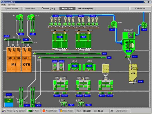 Řízení a monitorování mlýna v Pardubicích