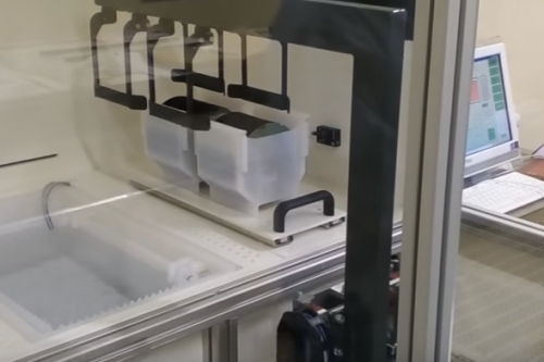 V dalším kroku řídicí systém vyhodnocuje koncentraci roztoku a na základě požadavku udržuje koncentraci roztoku, teplotu a výšku hladiny stálé. Manipulaci zde provádí manipulátor, který je rovněž řízen našim systémem TC700 s využitím dvouosého modulu GT-7752.