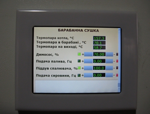 Řízení procesu sušení je vztaženo především na dodržování a korekturu teplot na vstupu a výstupu ze sušícího bubnu. Současně s tím je řízen proces dodávky paliva a potřebná kvalita směsi vzduchu do prostoru hoření směsi. Do celého systému řízení a monitoringu procesu je zakomponováno hlídání kritických údajů čidel bezpečnosti ve vlastní sušící lince a rovněž v celém objektu.