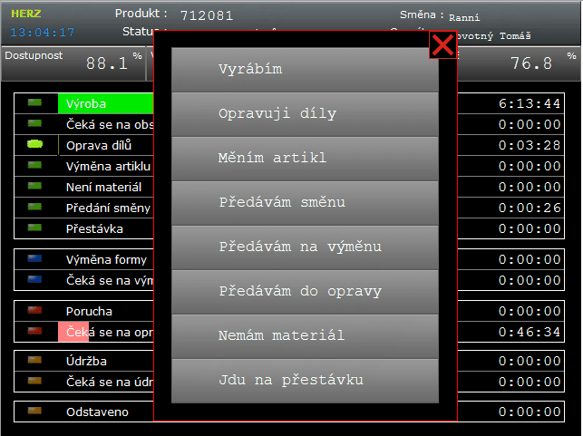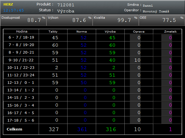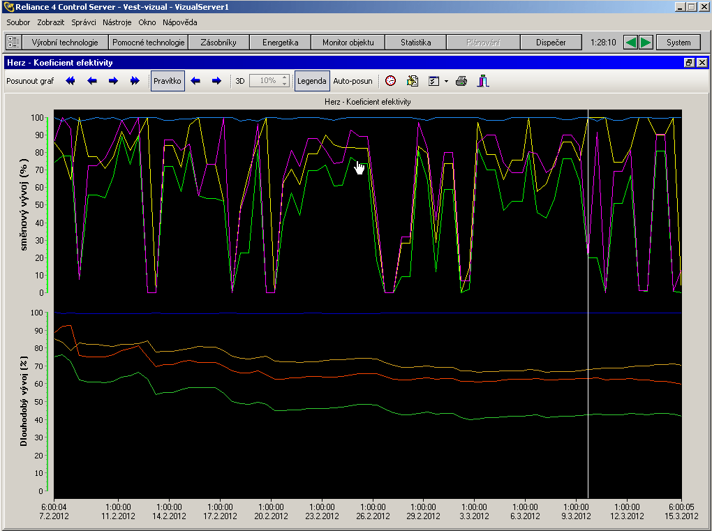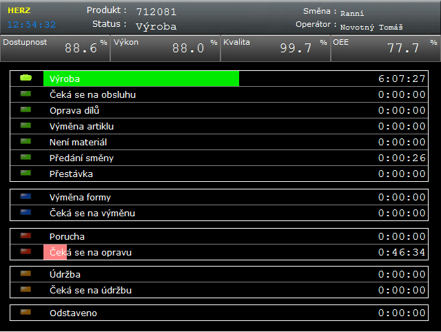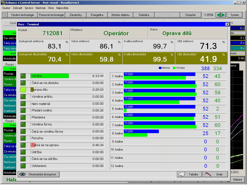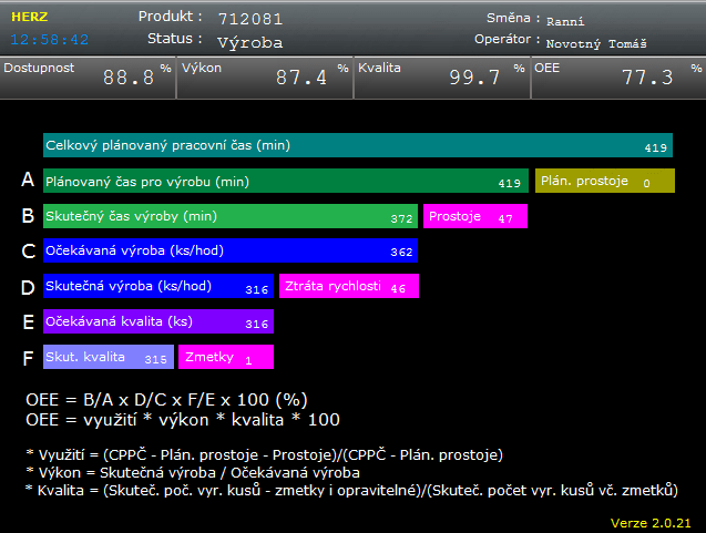 - a trend of OEE coefficient development with graphical visualization