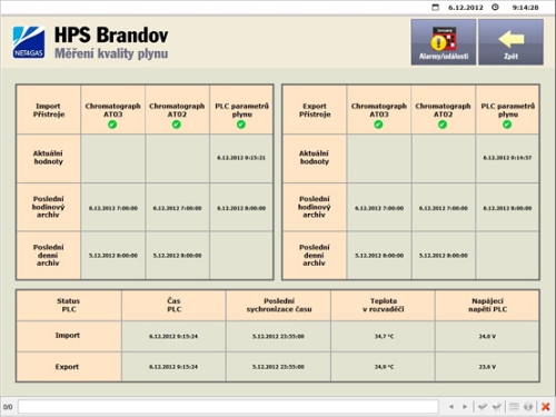 Vizualizace a archivace dat z přepočítávačů a chromatografů na hraniční předávací stanici plynovodu Gazela - Brandov, Česká republika