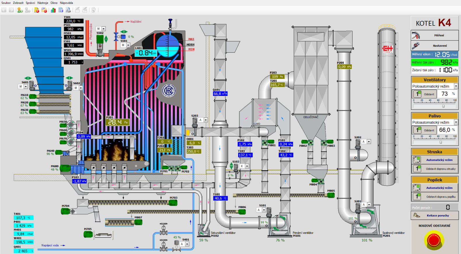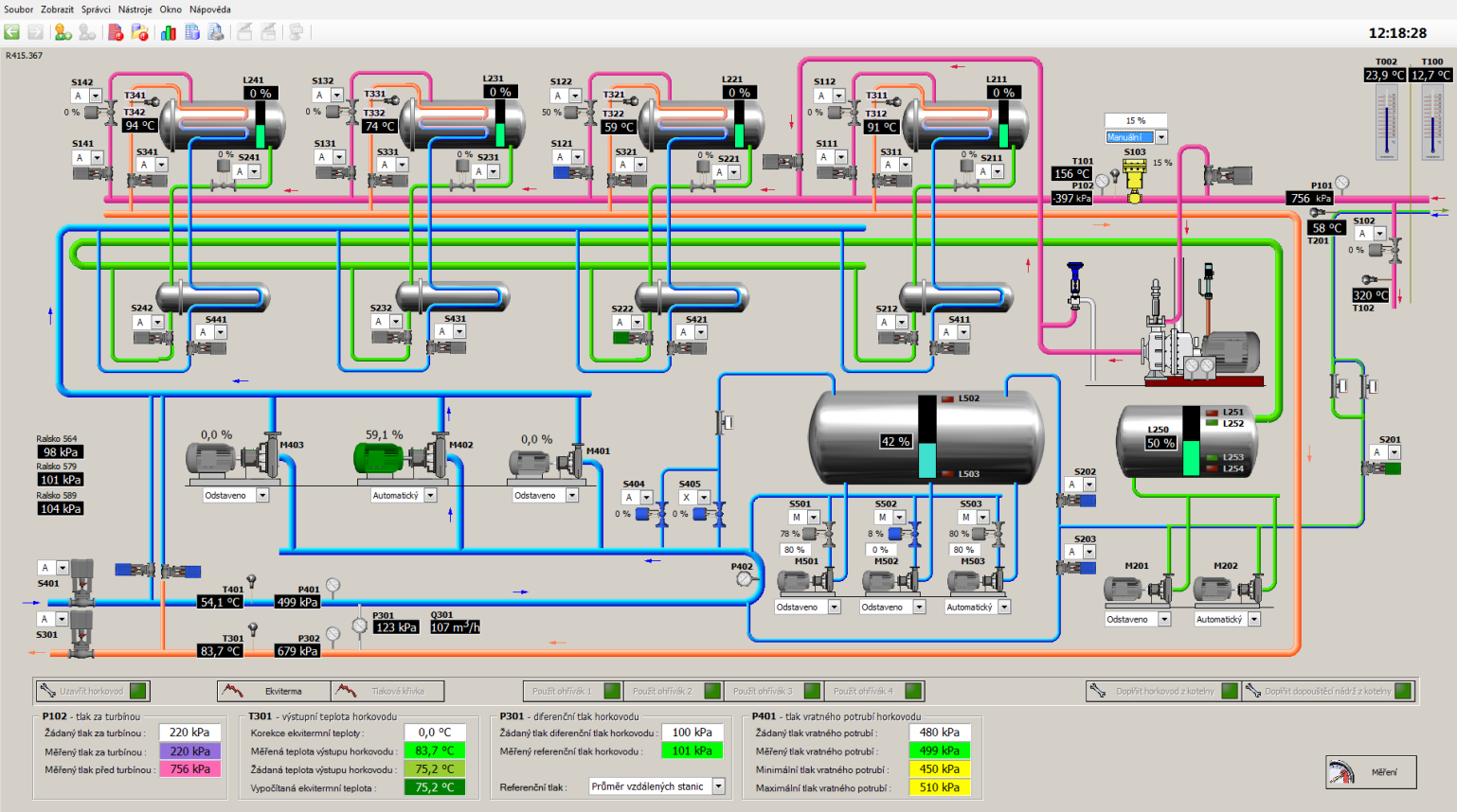 Hlavní předávací stanice byla řízena zastaralým a poruchovým systémem. Nový řídicí systém zajistil plynulý provoz s maximálním komfortem pro obsluhu. Na parních kotlích o výkonu 16t/hod byla použita řada autonomních regulátorů a zobrazovačů, samotná funkce kotle byla podmíněna častými zásahy obsluhy. Implementací nového řídicího systému se obsluha kotle zredukovala na minimum provozních zásahů a plně automatizovala. Konečnou fází byla realizace nového hardwarového a softwarového vybavení dispečinku. Jednotlivé technologie jsou prostřednictvím systému Reliance 4 přehledně zobrazeny na LCD monitorech. Obsluha je schopna centrálně sledovat a obsluhovat převážnou většinu použitých technologii.
